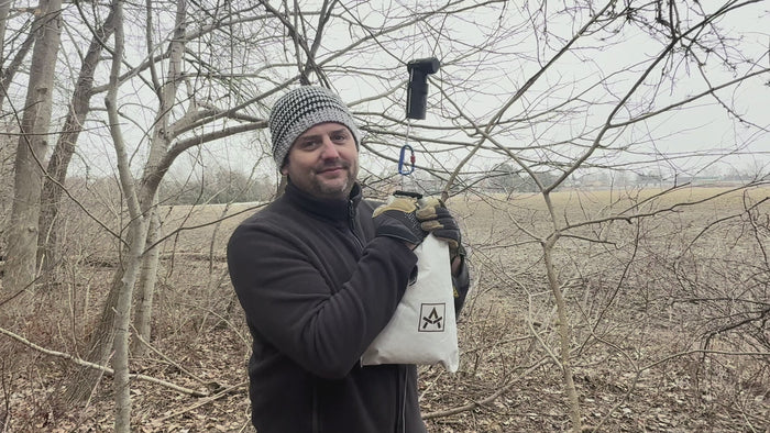 *The Bear Alert mechanism requires a specific bag strength threshold to activate the air horn. Standard backpacking bags (ie. 1.4 DCF, Nylon, Expac, etc.) will fail or rip before the alarm triggers.